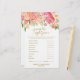 Ce jeu de poitrine pêche & rose fleur de pivoine "baby word scramble" et "devinez le bon prix" est parfait pour un baby shower de filles élégant. Le devant de la carte de jeu comporte des caractéristiques "baby word scramble" et le dos des caractéristiques "devinez le bon prix". Le design floral présente un bel agencement de pivoines d'aquarelle dans des tons de rougeur et de corail assortis à de somptueuses calligraphies de feuilles d'or imitation. Vous pouvez personnaliser les questions du jeu en cliquant sur le bouton "personnaliser". BÉBÉ SCRAMBLE DE RÉPONSE CLÉ : 1.Bassinet 2.Bassinet 3.Bouteille 4.Lit 5.Pacificateur 6.Changement de tableau 7.Brouillard 8.Poussette 9.Canard en caoutchouc 10.Couverture 11.Ensemble 12.Formule 13.Chaise haute 14.Mobile 15.Thermomètre Remarque : Cette fonctionnalité de conception ne véritable feuille or. C'est un graphisme de haute qualité fait pour ressembler à du papier doré.