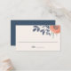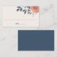 Ces cartes de place ou d'escorte correspondent à notre collection de mariages Peach Poppies et comprennent une fleur de coquelicot couleur pêche corail avec des feuilles et des bourgeons dans des tons doux et poussiéreux de bleu foncé et vert chasseur. Inclut des espaces pour écrire à la main le nom et le numéro de table de chaque invité. Cartes inversées à solide bleu marine poussiéreux.