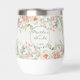 Pêcher Corail Orange Floral Mère de l'Épouse Vin Thermal Tumbler. Rayonnant la chaleur d'un coucher de soleil d'été, cet arrangement de fleurs Peach Orange incarne une élégance nuptiale intemporelle. Des teintes de pêche douce et d'orange s'entrelacent dans une cascade captivante de roses, de ranunculus et de dahlias, évoquant romance et joie lors de votre journée spéciale. Personnalisez avec votre nom et le titre de la fête nuptiale de votre choix pour en faire un individu comme vous êtes.