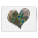 Design amusant en plumes de paon avec un double coeur et plumes de paon contre un arrière - plan de roche marron dans un design en forme de coeur. Super idée cadeau.