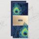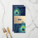 Peacock Feather Marine Blue Gold Mariage Menu Card