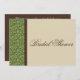 Elégante invitation à la douche nuptiale design. arrière - plan crème et marron, plumes de paon sur le côté.