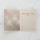 Chic moderne carte de voeux de vacances fait dans un arrière - plan damassé à l'aspect antique nacré or. Graphiques d'une silhouette noire de sapin de Noël aux accents dorés et une étoile d'or. Personnalisez le texte à l'intérieur et à l'extérieur, avec votre propre salutation de vacances.