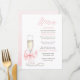This adorable vintage chic menu design reflects modern elegance and timeless charm, featuring a romantic pink bow and a prosecco glass with white pearls nearby.