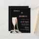 Une invitation moderne, élégante et glamour pour une fête d'anniversaire Pearls and Prosecco (n'importe quel âge) Un arrière - plan noir avec un verre avec des bulles roses et des perles. Le nom est écrit avec un script de style moderne écrit à la main. Personnalisez et ajoutez les détails de votre fête. 1 feuille = 1 invite imprimé bord à bord.