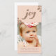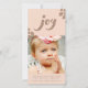 Jolie pêche douce avec la typographie et les accents de parties scintillant en bronze. Jolie parties scintillant de bronze Joy lettering/typographie sur un arrière - plan de pêche assez doux. De magnifiques accents de parties scintillant en diamant qui ajoutent une touche élégante à ce design simple, minimaliste mais beau. Ajoutez votre propre portrait/photo de Noël à ce modèle de carte photo de Noël en ligne facilement et rapidement ici et maintenant.