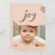 Jolie pêche douce avec la typographie et les accents de parties scintillant en bronze. Jolie parties scintillant de bronze Joy lettering/typographie sur un arrière - plan de pêche assez doux. De magnifiques accents de parties scintillant en diamant qui ajoutent une touche élégante à ce design simple, minimaliste mais beau. Ajoutez votre propre portrait/photo de Noël à ce modèle photo de Noël en ligne facilement et rapidement ici et maintenant.