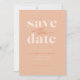 Cette couleur pêche moderne enregistrer la carte date comporte les mots "enregistrer la date" écrit dans un mélange de polices serif et script et a beaucoup d'espace pour vos noms ainsi que la date et l'emplacement mariage.