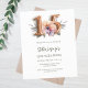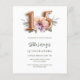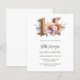 Une invitation moderne, élégante et glamour pour une Quinceañera. Arrière - plan blanc, décoré d'une pêche et d'une fleur violette aquarelle. Le nom est écrit avec un script de style à la main vert moderne. Personnalisez et ajoutez les détails de votre fête. Le numéro 15 est écrit avec une police de style ballon, script. 1 feuille = 1 invite imprimé bord à bord.