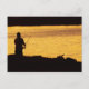 Carte postale personnalisable avec photo d'une personne qui pêche sur la rive d'une baie en début de matinée