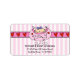Habille tes invitations pour la douche bébé, les annonces de naissance ou les cartes de remerciement pour bébé avec nos étiquettes d'adresse de retour pour petite fille à l'oeil doux! Cette étiquette d'adresse de retour comporte une petite fille qui regarde et tient un bib sur un arrière - plan rayé rose et blanc avec une bande de coeur rouge. La touche de finition parfaite pour vos Invitations de Douche Bébé. Invitations de douches pour bébé à assortir disponibles dans notre boutique @ www.celebrateitinvites.com.