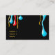 Ce carte de visite comporte la peinture vibrante s'égouttant en bas du visage de la carte en aqua, rouge et jaune au-dessus d'un arrière - plan noir. Le texte personnalisable est jaune. L'image est répétée sur le dos de la carte avec la pièce pour des détails d'adresse, des offres spéciales ou le texte promotionnel. Il est facile changer tout le texte sur ce carte de visite de qualité utilisant le modèle personnalisable. Ce carte de visite serait parfait pour un fleuriste, un décorateur intérieur, une boutique de cadeaux, un magasin d'art et de métier, un artiste, une imprimante, un éditeur, un peintre ou un décorateur.