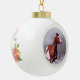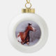 Photographie d'un cheval de peinture fonctionnant par la neige, montrée sur un ornement de Noël.