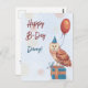 Peindre une chouette effraie mignonne avec un chapeau, un ballon et un cadeau. Carte de bonne anniversaire.