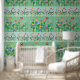 Répétez le motif artistique de Jolies fleurs sauvages en bandes horizontales sur un arrière - plan vert et bleu doux Pourrait convenir à une pépinière ou une salle de jardin Changer la couleur arrière - plan si vous avez besoin de votre décor