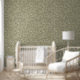 Main Drawn Pine Tree and Bird Pattern in sage green - Japandi Cabincore