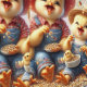 Envisagez un design de papier peint fantaisiste avec une famille de canards et de canards vêtus de minuscules tenues ludiques, dont des jeans et des casquettes colorés. Ces charmantes personnages sont disséminés dans un cadre naturel serein, par exemple par un étang calme ou une prairie ensoleillée. Les canards adultes, avec leurs casquettes jaunes et leurs jeans bien équipés, mènent le chemin, tandis que les canards, tout aussi élégants dans leur mini tenue, suivent de près derrière eux, barbotant joyeusement. L'arrière - plan présente une journée lumineuse et joyeuse, avec un ciel bleu doux parsemé de nuages blancs moelleux, et le soleil projette une lumière chaude sur la scène. Les canards et canards semblent profiter du temps parfait, se livrer à des activités comme se fracasser dans l'eau, jouer parmi les fleurs, ou simplement lézarder au soleil. La palette de couleurs est claire et aérée, les tons pastel complètent les vêtements lumineux des canards. Le design est ludique et attachant, apportant une touche d'humour et de joie dans n'importe quel espace, ce qui en fait l'endroit idéal pour une chambre pour enfants ou n'importe quel espace qui a besoin d'une ambiance ludique et légère.