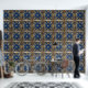Peel and Stick Fond d'écran d'inspiration indienne design Rich Blue Gold Carré Fond d'écran. Super projet do-it-yourself facile pour les locataires propriétaires d'intérieur designers. Créez un look personnalisé pour votre bureau d'appartements ou votre entreprise. Décorez les murs clignotants meubles tête de lit cuisine backsplash portes ou conteneurs de rangement. Les possibilités sont infinies. Disponible en vinyle texturé et lisse. Tailles 2'x4' 2'x8' 2x10' et 2'x12''.