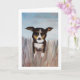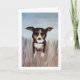 Un chien amical jouant dans l'herbe haute est un excellent moyen de dire bonjour. Transférez facilement cette peinture acrylique sur d'autres cartes et cadeaux. Les couleurs bleue, beige, marron et caramel sont belles en tant que carte de remerciement, carte d'anniversaire ou simplement pour votre papeterie personnelle.