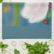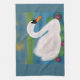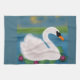 Serviette à main avec le tableau d'un beau cygne blanc nageant dans un étang, entouré de coussins de lys, avec un coucher de soleil coloré dans l'arrière - plan