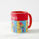Red Macaw Bird Painting Whimsical Art Mug, avec un nom entièrement personnalisable. Conçu pour mon dessin original de chat tabby. Bon appétit !