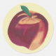 Jolie peinture d'une pêche mûre, avec une feuille verte, est imprimée sur des autocollants personnalisés. La pêche est faite de rouge, de rouge canneberge et de jaune. L'arrière - plan est jaune pâle et peut être customisé à une couleur différente si vous le souhaitez. Merci pour les achats de fruits, autocollants alimentaires chez CherylsArt sur Zazzle.