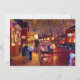 Fête aux couleurs violet rouge jaune bleu dans cette ambiance festive à St. Charles Missouri. Les gens se rassemblent pour dîner dans les nombreux restaurants et bars de ce quartier historique national en début de soirée. Des reflets colorés sont visibles dans les rues pavées humides le long des nombreux bâtiments grecs Revival, victorien tardif, italianate.