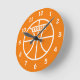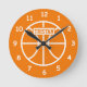 Horloge murale de basket-ball pour enfants pour la chambre ou la crèche. Design sportif mignon pour les joueurs de basket, entraîneur, entraîneur etc.. Personnalisez avec le nom ou le monogramme de l'enfant. Couleur arrière - plan personnalisée, c'est-à-dire orange. Idées de décoration tendance des chambres. Thème sportif Cadeaux de fête d'anniversaire. .