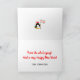 Voici une carte de Noël amusante avec une pyramide en forme d'arbre. Chaque pingouin a son propre chapeau de Père Noël rouge et sa cravate arc rouge assortie. Le recto de la carte indique, "Joyeux Noël" en rouge. L'arrière - plan de la couverture de carte a pinède vert et blanc. L'intérieur de la carte comporte un seul pingouin avec un drapeau qui dit Joyeux Noël. Le texte dit : "De toute la bande ! Et aussi une bonne année !" avec une signature, "Les Johnsons". Personnalisez le texte à l'avant ou à l'intérieur de la carte à vos propres mots si vous le souhaitez. Assurez-vous d'ajouter le nom de votre famille sur la ligne de signature avant d'ajouter cette carte à votre panier. Le dos de la carte comporte un autre pingouin avec un drapeau qui dit Bonne Année.