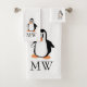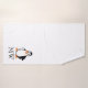 Bath towel set penguin design that you can customise with any text of your choice. Should you require any help with customising then contact us through the link on this page. Monogrammed penguin design towels