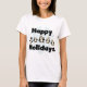T-shirts de Noël, tasses, cartes, autocollants, sacs fourre-tout, magnets, et autres vêtements et cadeaux de Noël avec cinq pingouins adorables et le texte qui dit Joyeux Fêtes.