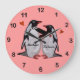 Partagez l'amour avec cette horloge design Coeurs de pingouins! Illustration graphique d'un couple de pingouins dans le design de l'amour et du coeur. Customisez avec votre couleur arrière - plan préférée et ajoutez vos noms pour un cadeau unique pour la Saint-Valentin, les mariages, les anniversaires ou toute occasion spéciale.
