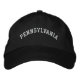 Un Casquette réglable de base brodé avec le texte (personnalisable) Pennsylvania. Sélectionnez la couleur et le style du casquette et du texte de votre choix.