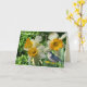 Carte de voeux avec nuthatch et jonquilles sur le devant.