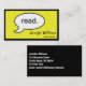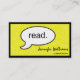 Ces Cartes de visite Jaunes colorés "Lire" Moderne Professionnel Standard sont un choix carte de visite délicieux pour les bibliothécaires, les enseignants et les tuteurs. Commencez la conversation avec ce carte de visite de lecture ; soyez remarqué et rappelez-vous.