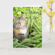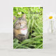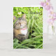 Avant de la carte dit "Pensez à vous", avec une photo d'un beau calico Chat qui regarde le ciel assis dans un jardin luxuriant. Cette carte peut être customisée si vous le désirez.