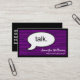 Ces Cartes de visite professionnels modernes "Parlez" simples et violets sont un choix amusant et unique de carte de visite pour un psychologue, un psychiatre, un conseiller ou toute autre entreprise axée sur la parole ou la thérapie. Cette carte en bambou violet attire vraiment l'oeil ; soyez remarqué et rappelez-vous.