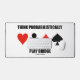 L'assiette du pont est bien vivante et bien sur ce tapis de bureau avec les quatre costumes de carte ainsi que le pont sonore suivant / conseil de pont dupliqué : "Penser de façon probabiliste Jouer Pont". Faites faire aux autres une double prise avec une dose d'humour de pont à votre prochain jeu de bridge avec ce tapis de bureau de relais mémorable. Pas besoin d'être un professeur de pont ou un joueur de pont passionné pour profiter!