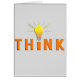 Une conception simple qui indique "pensent" avec une ampoule pointillant la lettre "je" dans jaune et l'orange. Il y a les lignes onduleuses autour de l'ampoule qui pourrait discutablement représenter les cheveux mal peignés d'Albert Einstein.