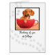 Apportez un sourire à votre étudiant qui étudie à l'université. Un chiot de dachshund est assis dans une tasse avec des empreintes de chien autour.
