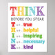 Think Before You Speak Poster, une affiche motivationnelle imprimable parfaite pour la campagne de prévention de la violence à l’école.