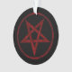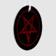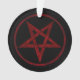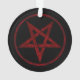 Pentagramme rouge, inversé, texturé en cercle, sur arrière - plan noir. Symbole occulte 666