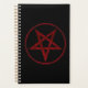 Pentagramme rouge, inversé, texturé en cercle, sur arrière - plan noir. Symbole occulte 666