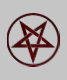 Pentagramme rouge, inversé, texturé en cercle, sur arrière - plan noir. Symbole occulte 666
