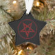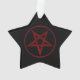 Pentagramme rouge, inversé, texturé en cercle, sur arrière - plan noir. Symbole occulte 666
