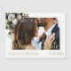 Mariage élégant enregistrer la date carte magnétique avec beau coin fleurs blanc et ivoire avec chasseur foncé feuillage saisonnier hiver vert et un script de typographie chic comme or. +++++++++++ Parfait pour un mariage hivernal moderne.+++++++++++++++++++++ Pour les articles connexes, voir la collection sous l'image principale.