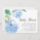 L'invitation au baby shower chic présente des illustrations de fleurs de pivoine d'aquarelle dans les tons bleu de cornflower pâle, accentuées de feuilles vert luxuriant. Personnalisez avec les détails de votre baby shower alignés à droite. Cartes inversées à bleu clair solide.