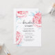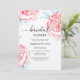 Invitation de douche nuptiale décorée de charmants pivoines aquarelles, fleurs roses douces et feuilles émeraude.