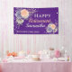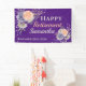 Bannière élégante de la fête de la retraite comprenant un arrière - plan violet décoré d'une jolie aquarelle fleurie rose pâle et violet roses de pivoine, feuillage et lampes à cordes. . Une grande bannière à accrocher pour accueillir les invités à la fête à ou pour féliciter quelqu'un pour leur retraite. Ajoutez simplement le nom à personnaliser. Tous les textes peuvent être customisés si nécessaire de manière idéale pour toute fête comme les anniversaires et anniversaires.