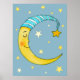 Pépinière Mur Art Lune Étoiles Bleu Jaune Poster